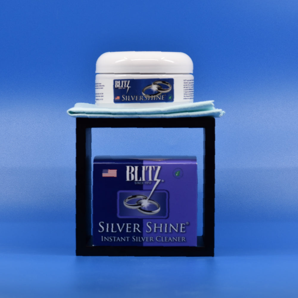 Easily and instantly remove tarnish from silver without the use of harsh or toxic chemicals. Using nothing but tap water and our Activator Solution, watch as tarnish is immediately lifted from the surface of your silver. Each box of this silver jewelry cleaner contains a 4" x 6" two-ply treated silver buffing and polishing cloth, three of the special trays, basket, and a ready to mix silver cleaning solution. It all comes packaged in a wide mouth jar to easily clean larger pieces of silver jewelry. You can use Blitz stock #681PPF for refill packets.