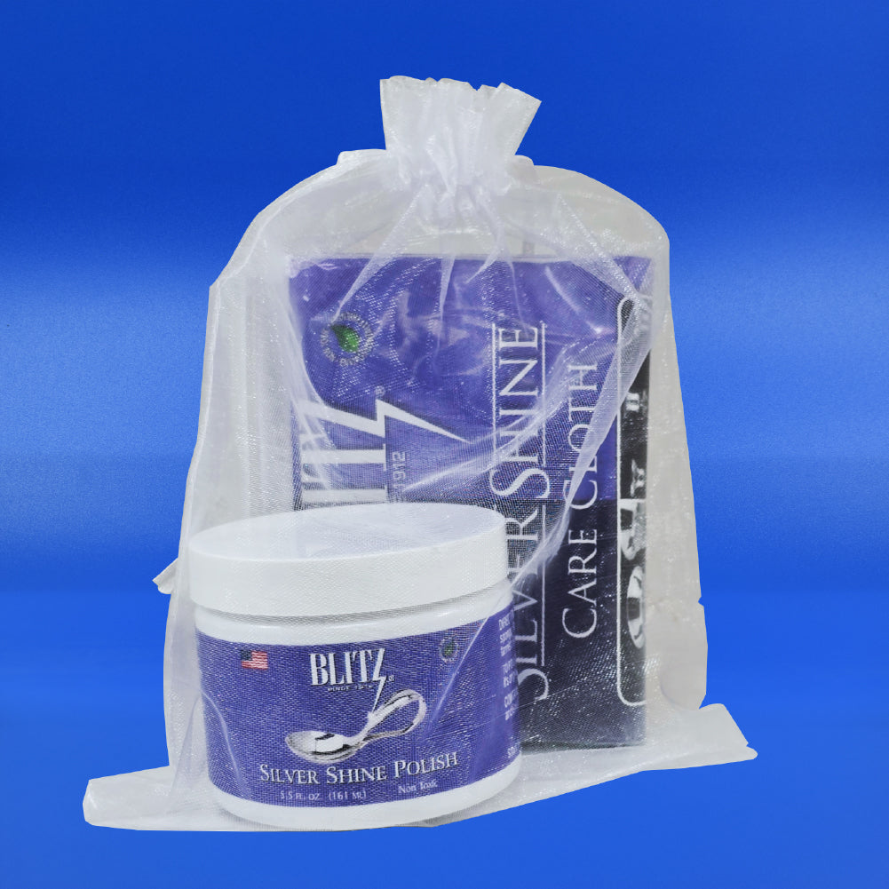 The Blitz Sterling SilverShine Polishing Cloth is 100% cotton flannel and contains non-toxic polishing agents with BLITZ® Tarnish Inhibitors.