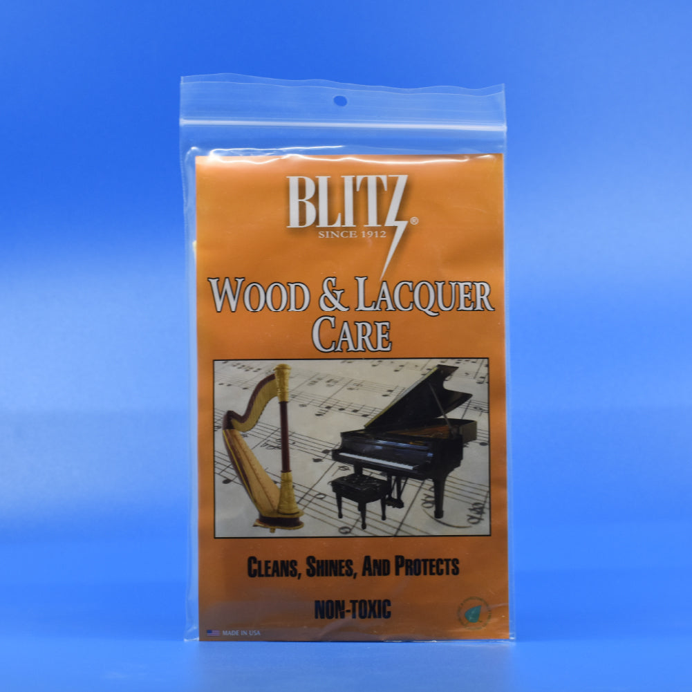 This cloth was created by Blitz for the care of the finest, most delicate surfaces. For all wooden musical instruments. One of the few cleaning cloths that contain both natural carnauba and natural beeswax, with just enough silicone added to assure even distribution of these natural, renewable waxes. Perfect for waxed wood finish or lacquered wooden surfaces of pianos, violins, guitars, violas, wooden wind instruments, cellos, and more.